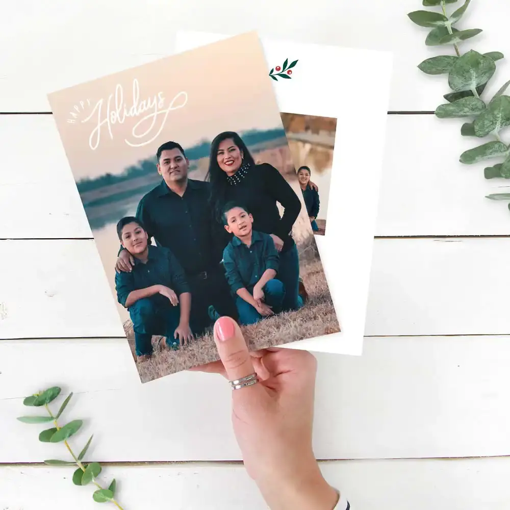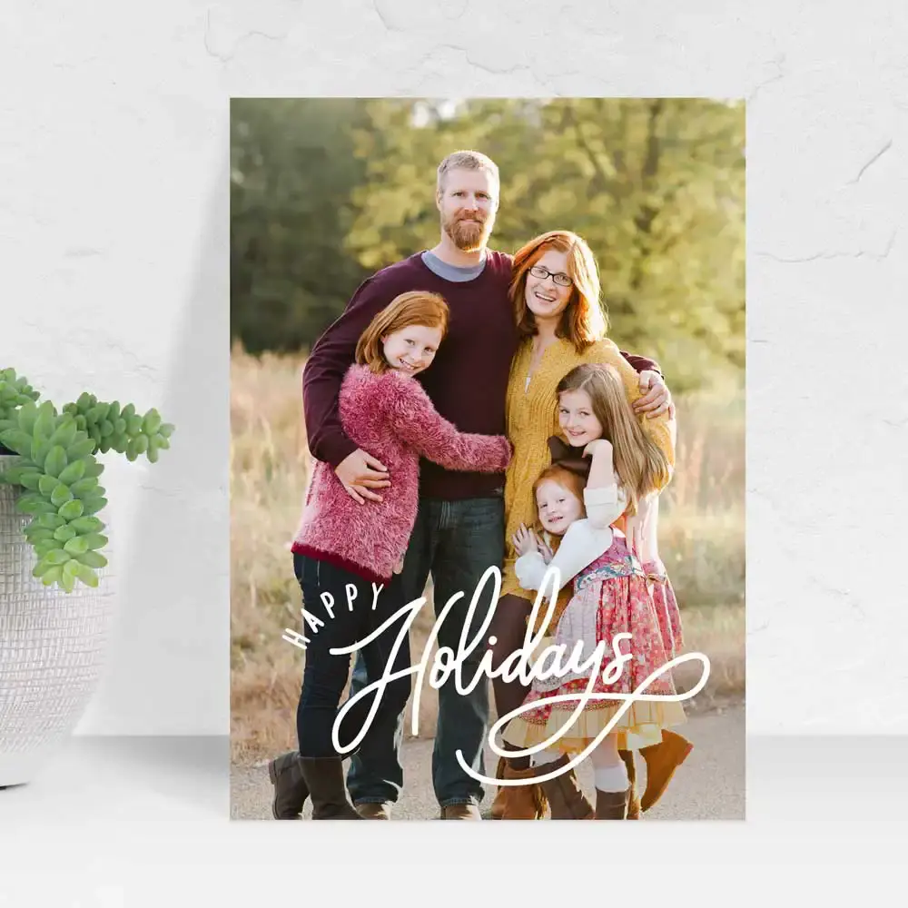Send love & cheer to friends & family this holiday season with personalized Holiday Cards! Our cards are printed on premium cardstock. Customize the design with your favorite photo and a personalized greeting. Use the back for additional photos or text.